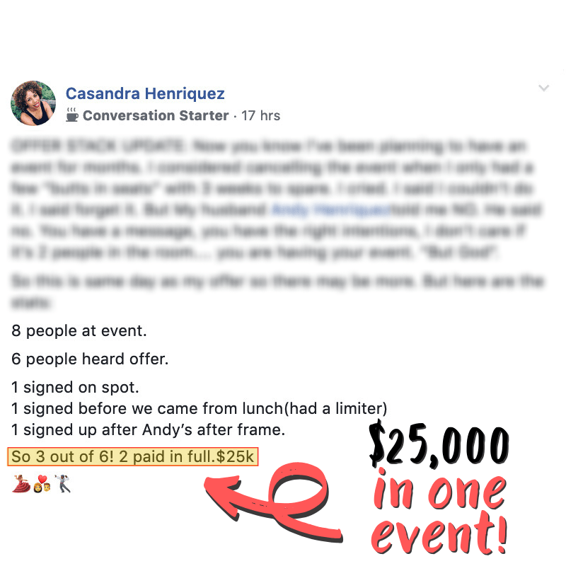 One client went from “no conversions” to selling out her group program in a single weekend. Another closed $18,000 from a 20-minute talk. Another booked her first paid speaking gig ever.
